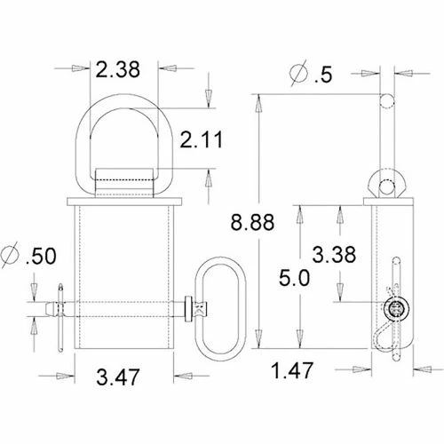 Buyers Products 1/2 in. D-Ring is forged from C-1045 Steel. Unit can be quickly drop-mounted into a stake body pocket as a convenient anchor tie point for chains or straps. Fits common flush and outside stake pockets. Black powder coated for excellent corrosion resistance.