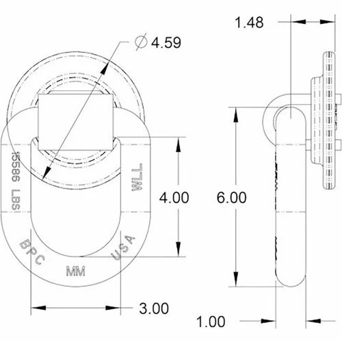 Buyers Products Forged D-Ring rotates 360° for optimum strapping angle. Excellent for securing cargo, rings have a working load limit of 15,586 lb. and an ultimate breaking strength of 46,758 lb. Not for overhead use.