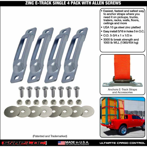 Snap-Loc E-Track Single Strap Anchor W/ Allen Screws, Zinc, 4/Pack
